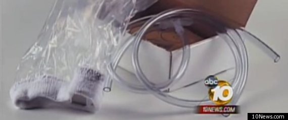 Charlotte makes the kits — which cost buyers $60 — by taking large plastic bags and sewing soft elastic bands around the opening. There is a slot in the bag for a plastic tube carrying helium gas to be inserted. Helium — when inhaled in its pure form — is deadly. Kit users are responsible for securing their own helium gas.