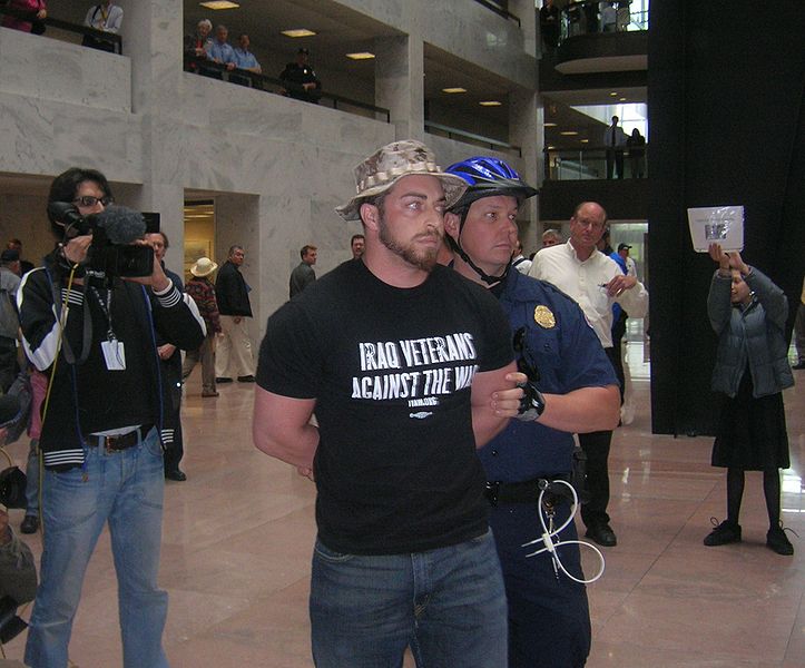 In April 2007 Kokesh and a number of other activists were arrested for protesting the Iraq war in the Senate Hart Office Building. Kokesh had performed a ceremony for lost service members using an American flag.