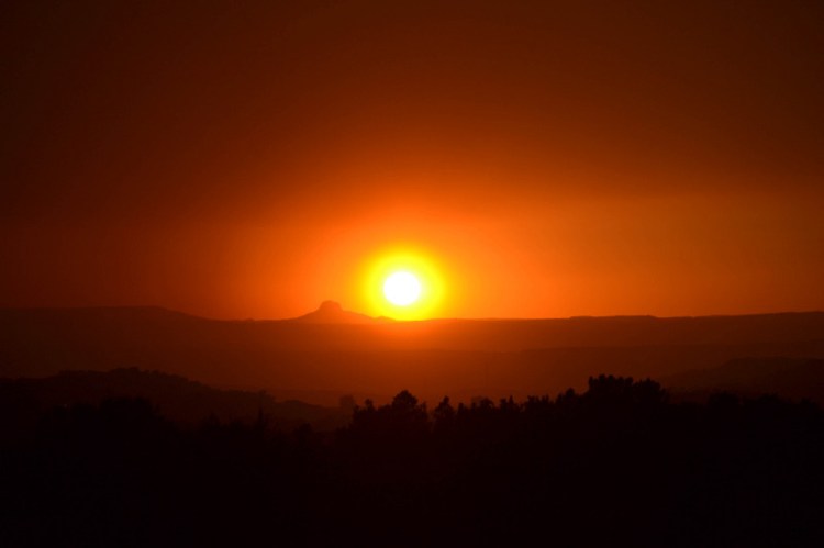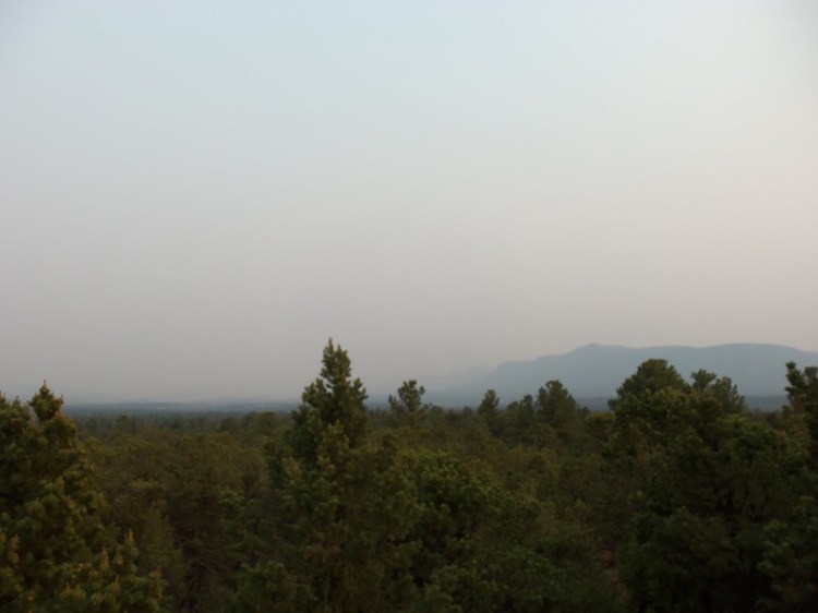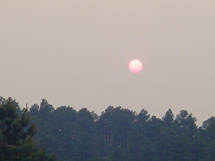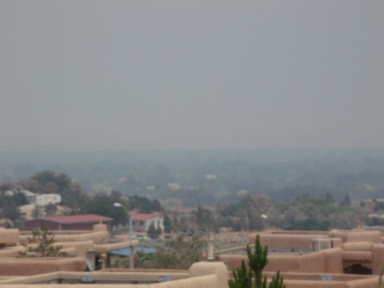 For several days now, Albuquerque has been blanketed with a thick layer of smoke originating from the massive fires in Arizona. The city has been on health alert, and hospitals have seen a jump in respiratory-related visits. The smell of burning wood is much like the smell of a campfire and has permeated our both sinuses and homes. The ash is leaving a light layer both inside and out. Normally, the visibility is literally as far as ones eyes can see – which is to the horizon depending upon the view. For the past few days, the visibility has dropped to 3 miles and under. The magnificent Sandia Mountains which border the east end of our city, have completely disappeared under the layer of smoke.