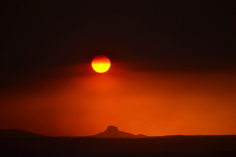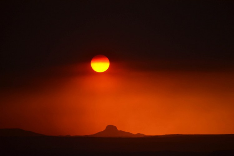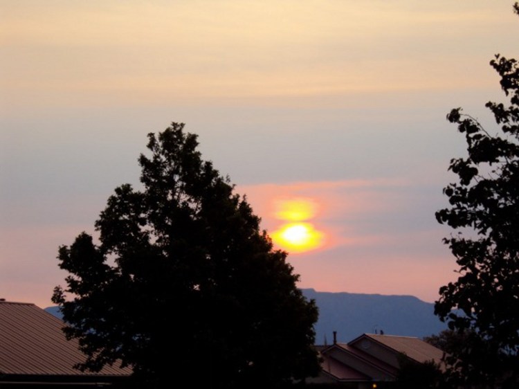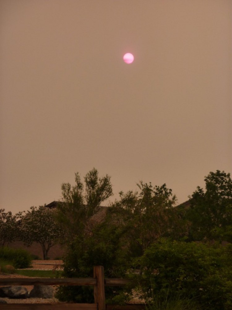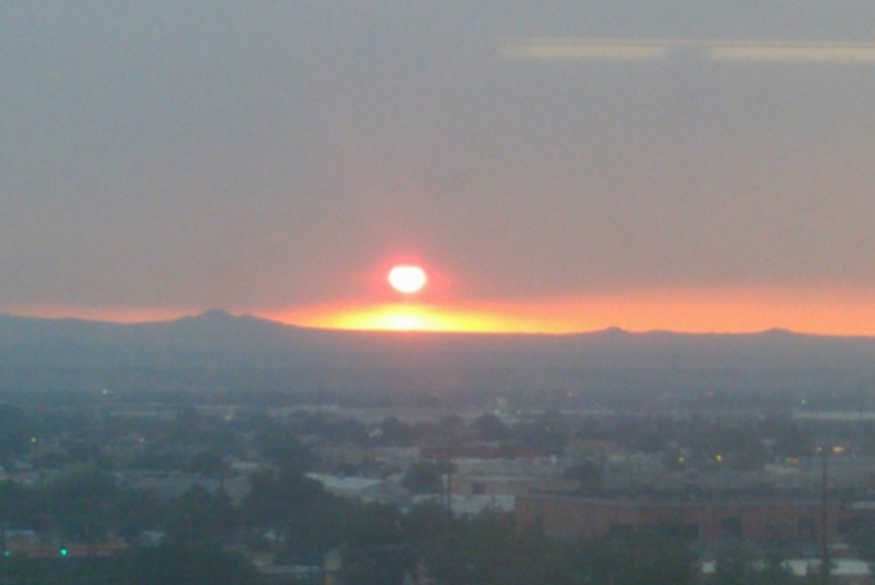 Amidst all the health problems arising from the smoke, the light filtering has created some magnificent photo opportunities. Please remember that in all these pictures, there are no clouds in the sky – which is normal for Albuquerque. All that you see is smoke…