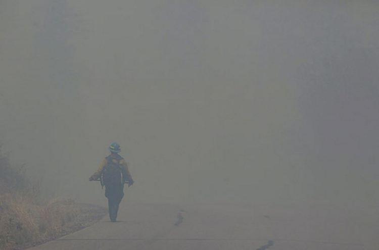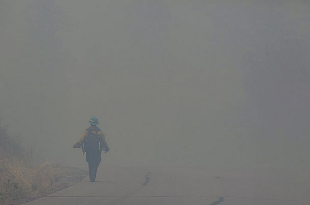 A firefighter walks through heavy smoke near the Los Alamos fire, June 29, 2011 JAE C. HONG AP