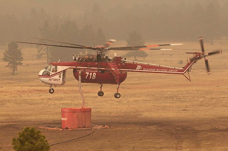 A sky crane near Luna, N.M., fills up with a fire retardant on June 14, 2011 Matt York AP