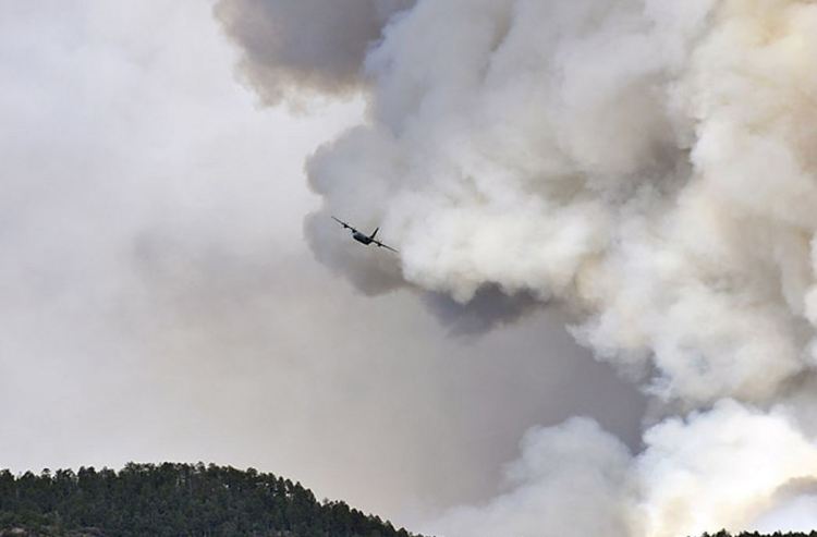 A slurry bomber flies over the Pacheco Canyon fire as it burns north of Santa Fe, N.M., on June 18, 2011 EDDIE MOORE ALBUQUERQUE JOURNAL ZUMAPRESS