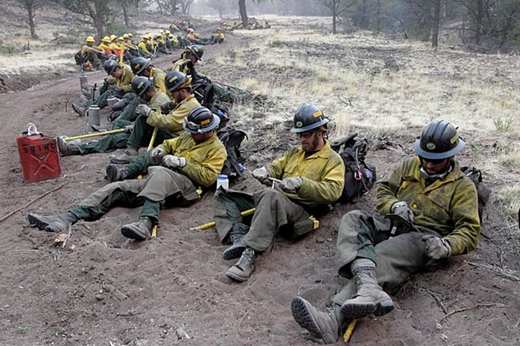 Fire-crew members sharpen their tools as they prepare for a back-burn operation to slow the spread of the Wallow fire JAE C. HONG AP
