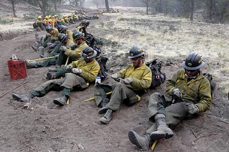 Hotshot crew members prepare to work in the Pajarito Mountain ski area, June 28, 2011 JAE C. HONG AP