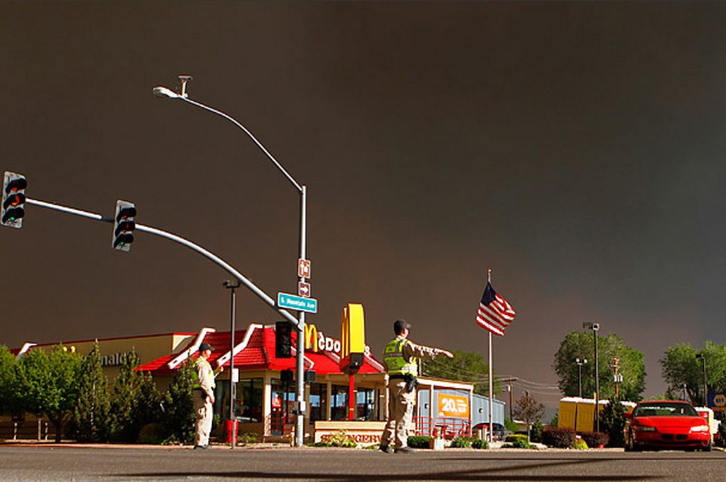 Police officers direct cars as residents leave Springerville, Ariz., on June 7, 2011 JOSHUA LOTT REUTERS