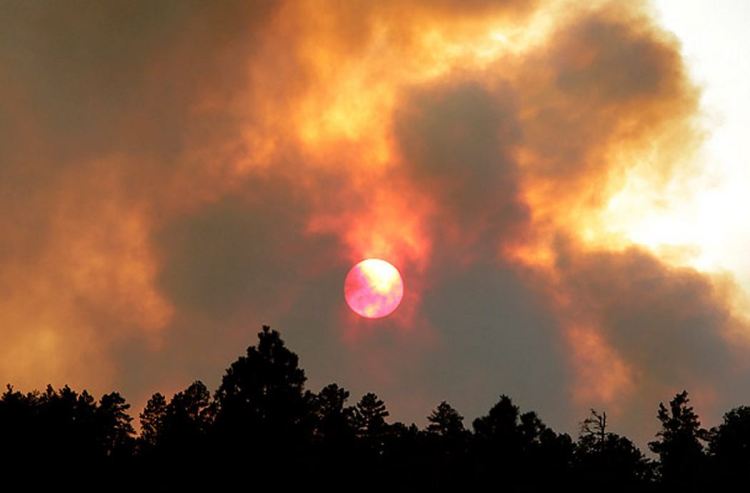 The sun shines through smoke from the Las Conchas fire burning near Los Alamos, N.M., on June 27, 2011 SUSAN MONTOYA BRYAN AP