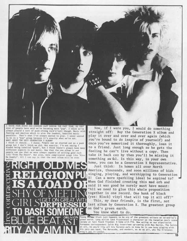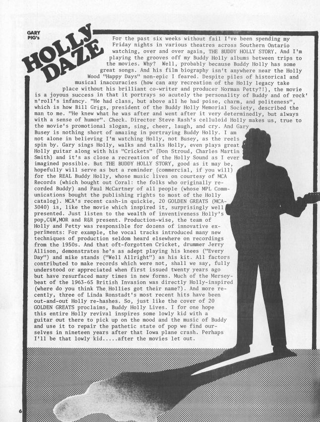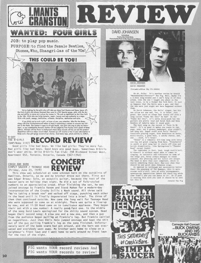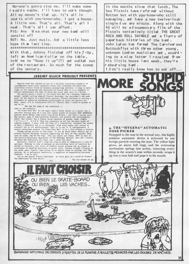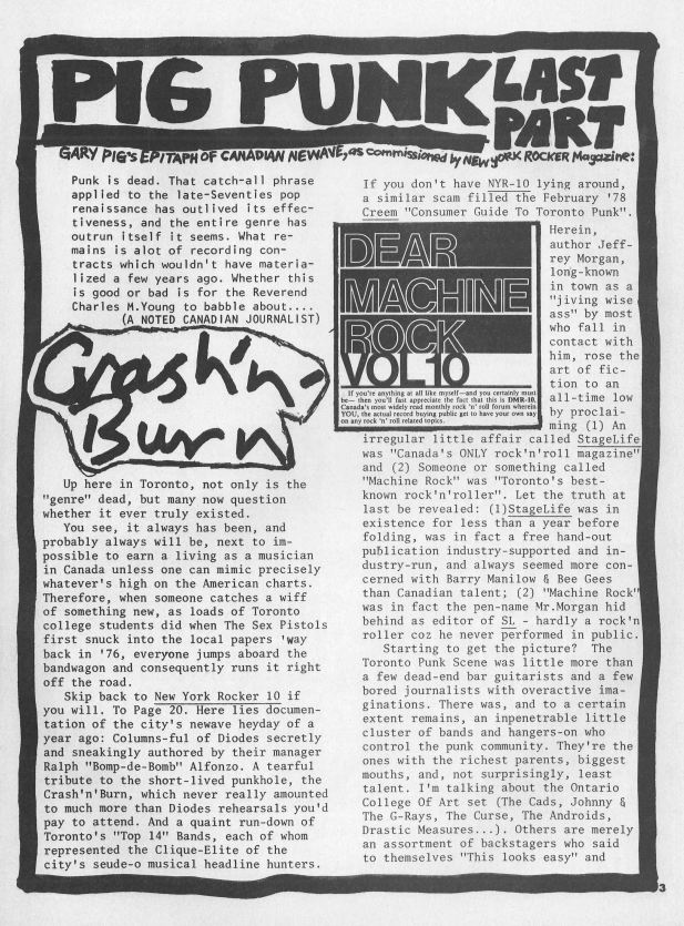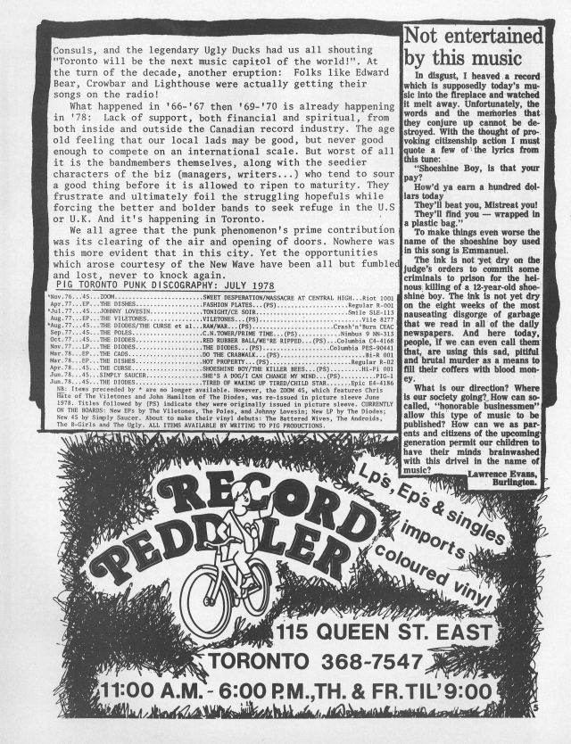 Interviews with John Lydon and Generation X, articles on Suicide, Buddy Holly, and Destroy All Monsters, “Pig Toronto Punk Discography,” Bill McAvory on the Ugly Ducklings, Edgar Breau plays “Blindate,” plus record reviews of David Johansen, Wild Man Fischer, Blondie, Mink DeVille, the Paley Brothers, Tom Petty, the Romantics, Television, Soft Boys, Ringo Starr, Ian Dury, and many more.