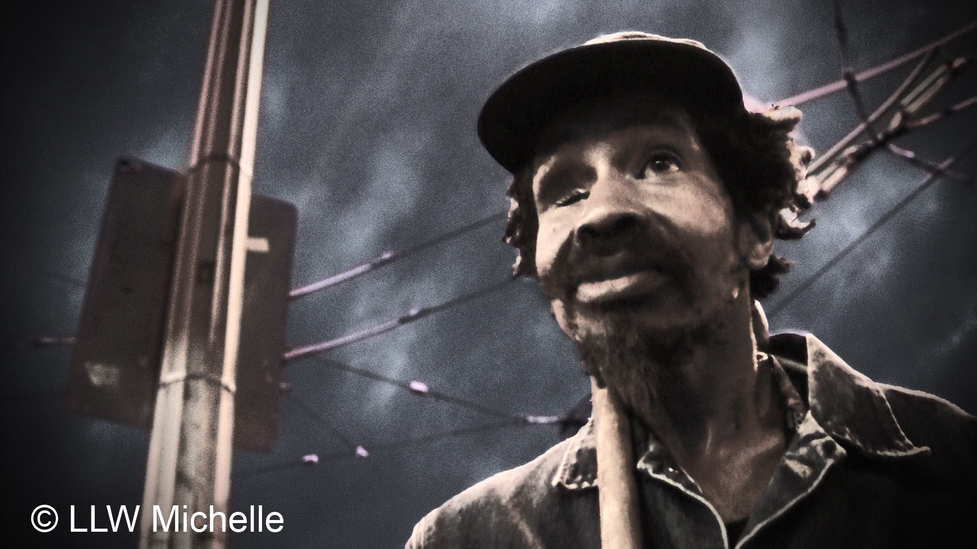 The photos are actually frame exports from my camcorder which I had running. The settings were not right therefore the quality was poor – but I love listening back on our conversation. Since it is difficult to improve poor quality images, best to modify them. Plus I feel this man deserves to be show as photographic art and he was beautiful on both the inside and out.