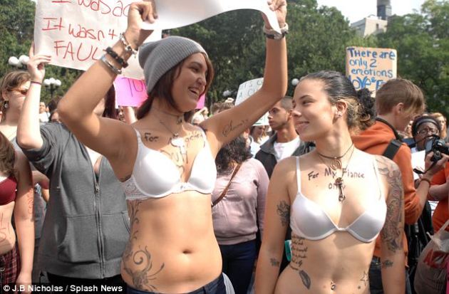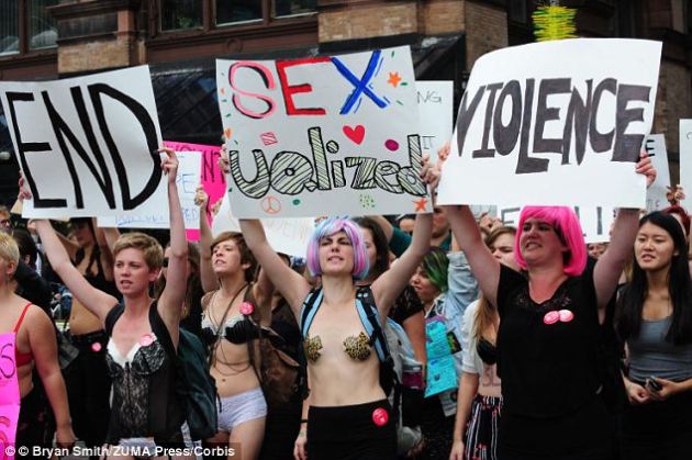 Protesters dressed in their underwear have taken to the streets of New York Sunday, Oct 2, 2011. after it emerged the NYPD were warning women in Brooklyn to cover up in the face of sex attacks.