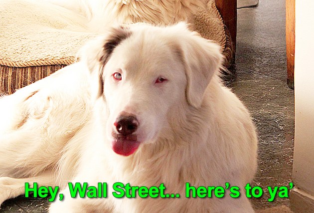 Even my dog, who is a “lethal white” Aussie, has asked me to send a message to Wall Street. So here it is…