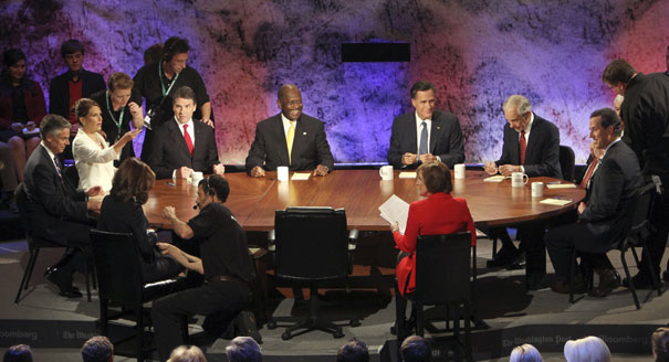 * The moderator asked Rick Perry about “mandates.” Marcus Bachmann heads to the bathroom. Now he waits!