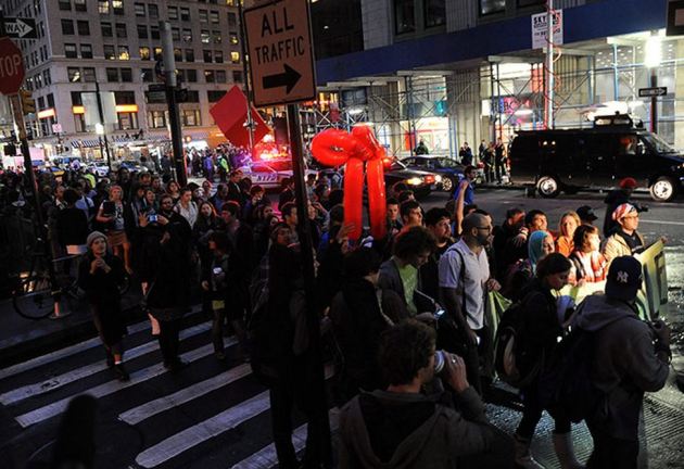 (Below) Policing the area outside Zuccotti Park. Photograph: Andrew Gombert/EPA