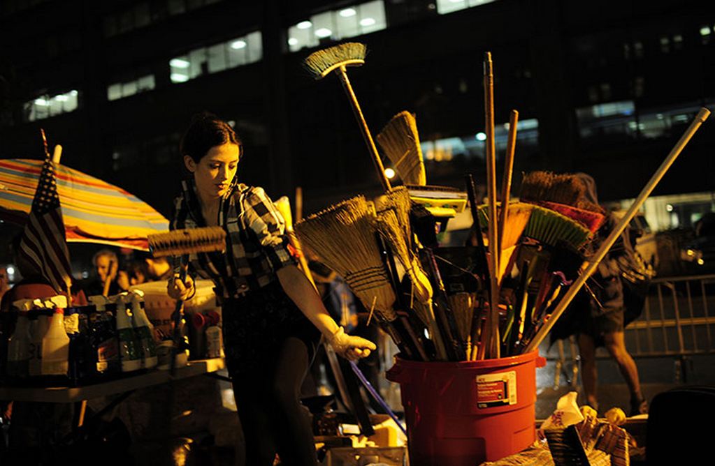 (Below) Protesters spent the night cleaning the park. Photograph: Emmanuel Dunand/AFP/Getty Images