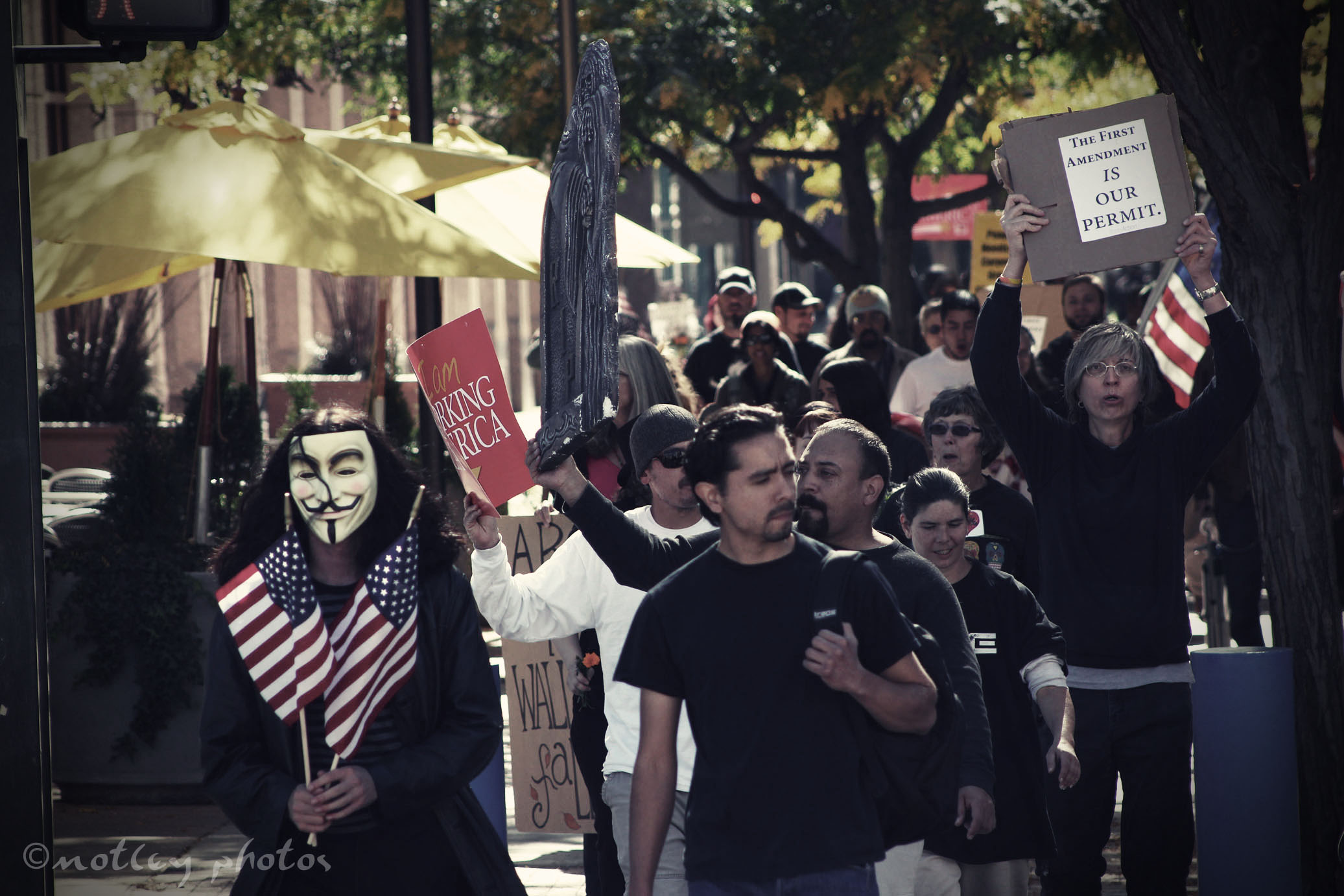 Occupy / (un) Occupy Albuquerque protesters put on a wake Saturday in honor of the death of our First Amendment rights to Free Speech and Peaceful Assembly after the UNM denied renewal of their permit, and Administration banned the group from protesting on the campus – else face arrest.