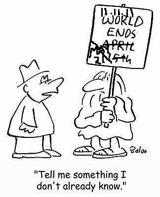 I am telling you all this because another prophet is predicting the end of the world… again. I don’t know about you, but I am rather tired of the world ending all the time. Just when I begin thinking I will be able to sleep in, my alarm goes off to notify me it’s time to get up and go to work.
