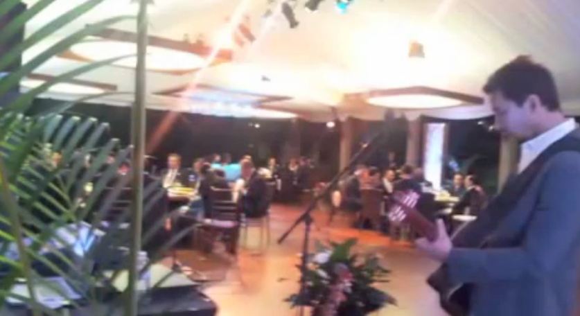 Makana, a popular Hawaiin troubador, was enlisted to sing and play his guitar in the background at a dinner Obama and other APEC leaders attended Saturday night. His song of choice: a 45-minute montage of protest songs, all while wearing a shirt that read “Occupy with Aloha.”