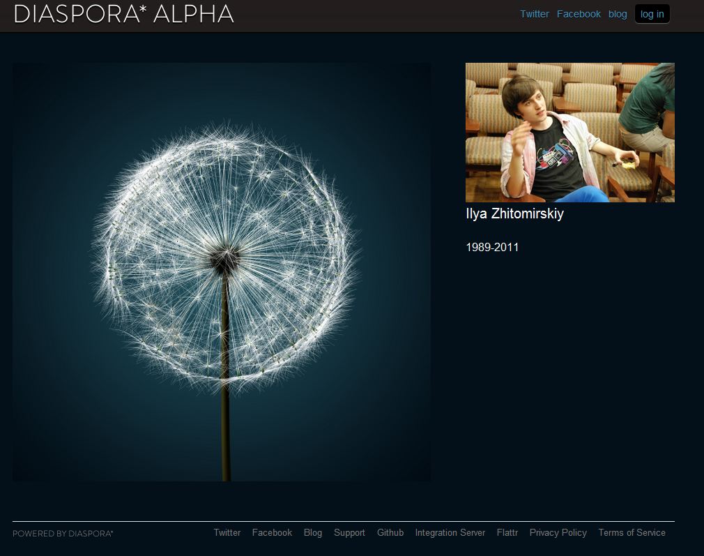 In tribute, the home page of Diaspora featured a giant dandelion seed head next to an image of Mr Zhitomirskiy.