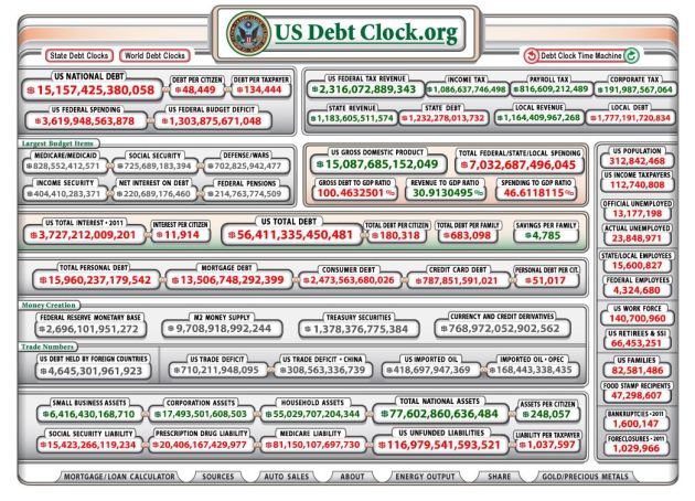 Here is a real-time site which shows the US Debt numbers as they are actually occurring. I am unable to embed this clock, so click here to view it.