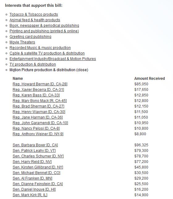 - Information on H.R.3261 – Stop Online Piracy Act at OpenCongress.org