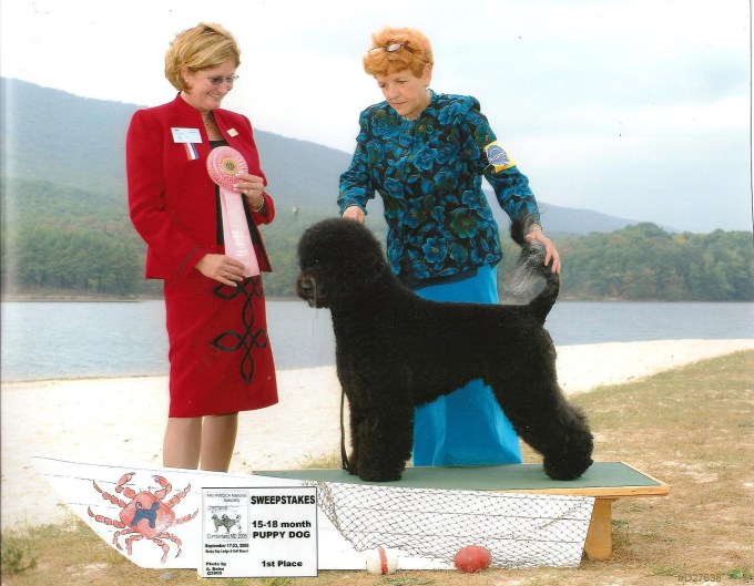Lyn is our local female version of the “Dog Whisperer,” and has a unique gift with dogs. They all LOVE her. Having been born and raised in a family who has always raised and showed dogs, that is all she has known since day one. Lyn is also a Master Groomer – and a very good one at that. She has raised and bred several different breeds throughout her life including Labs and Greyhounds, and has also been in the Westminster Dog Show three times. For the past 8 to 10 years, she has been breeding, raising, training and showing Portuguese Water Dogs. Several of the Porty’s here now have both their American titles as well as Canadian Titles. I, myself, have never been involved with best of breed type shows, and it is confusing… earning points, placements, etc. until enough has been gained to earn a championship title of some sort. She’ll return home from shows and rattle on about which dog did what, earned this, lost that, and so on. I just nod my head and follow her lead. If she’s showing exuberance, then I respond, “How wonderful!” If she is bummed out, then it is “I’m so sorry, I’m sure you’ll do better next time.” My point here being that I know she has some very “well-titled” champion dogs – I’m just not sure what.
