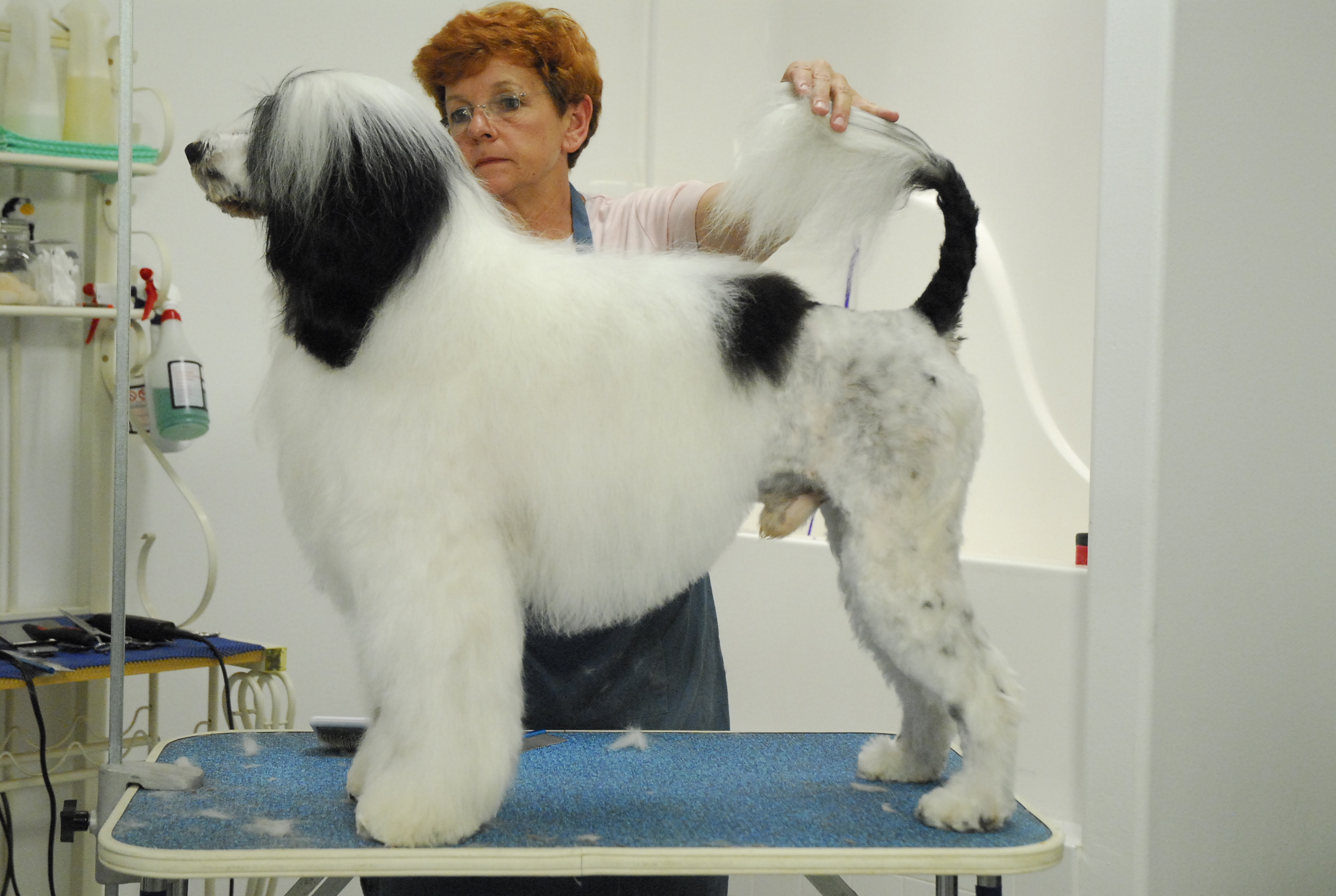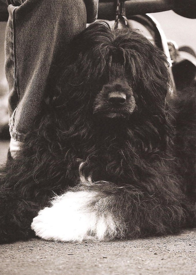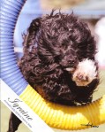 I do not know who this is, but Lyn did the grooming for a show. Also a wavy-coat and this cut is called a “Lion Cut.” When the Porty is mostly white like this one, they are called a “Party Porty.”