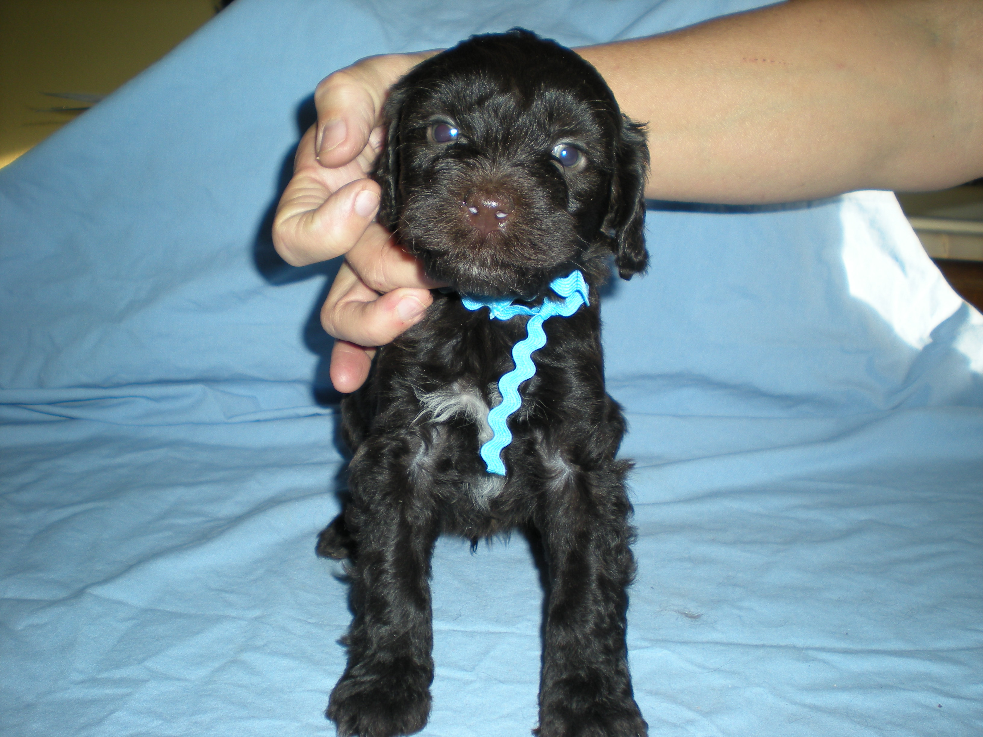 Here is Dawson, way back when he was a puppy. Dawson is a curly-coated Porty. Igraine is a wavy-coated.