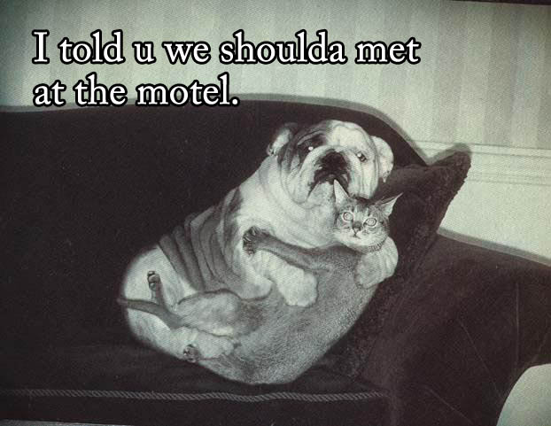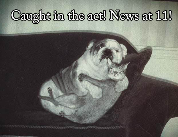 I came across this photo somewhere on Facebook so I have no idea where it originated. I basically just had a field day with it. What in incredible photographic capture! And with the glowing eyes, it was a flash in the dark shot. They were busted!