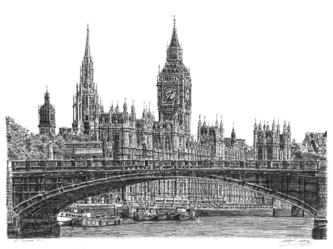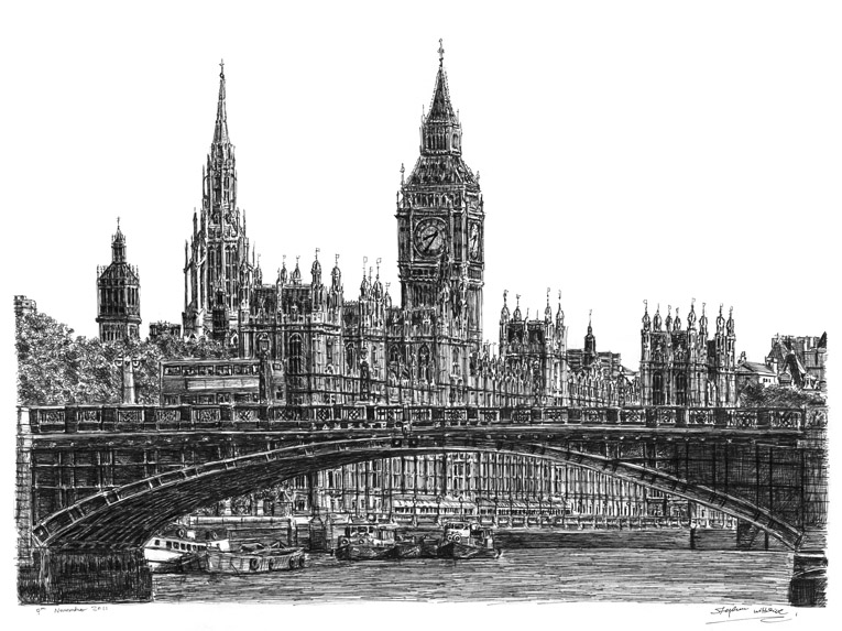 At the age of five, Stephen was sent to Queensmill School in London, where it was noticed that the only pastime he enjoyed was drawing. It soon became apparent he communicated with the world through the language of drawing; first animals, then London buses, and finally buildings. These drawings show a masterful perspective, a whimsical line, and reveal a natural innate artistry.