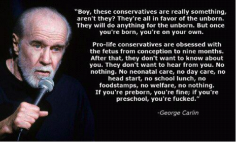 They were going to get government off our backs. Yeah, but when it comes to abortion they don’t mind government being in a woman’s uterus, do they? Yeah, backs are no good, but uterus is ok by them. These people call themselves Right to Lifers. Don’t you love that phrase, and don’t you love the way these kind of people pervert the English language? Right to Lifers? Don’t you realize that most of the Right to Lifers are in favor of the death penalty, and they support the South American death squads, and they’re against gun control, and they’re against nuclear weapons control. When they say Right to Life they’re talking about their right to decide which people should live or die.