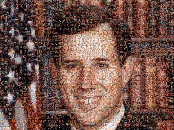 Warning… NSFW image – although you do have to really zoom in to see the specifics of the images. This is a composite portrait of Sen. Rick Santorum entirely made from hundreds of images of gay porn.