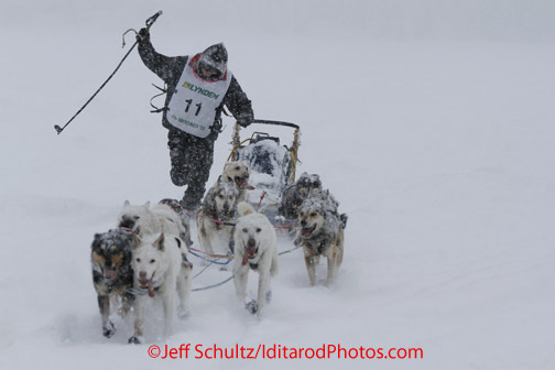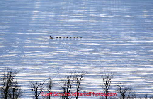 Sunday, March 4, 2012 A dog team traveled along the Yentna River after departing the restart of Iditarod 2012 in Willow, Alaska.