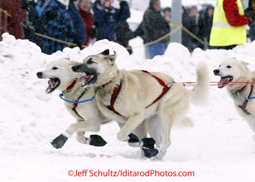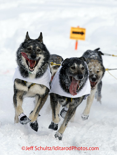 Saturday, March 3, 2012 Paul Gebhart dogs run with gusto during the Ceremonial Start of Iditarod 2012 in Anchorage, Alaska.