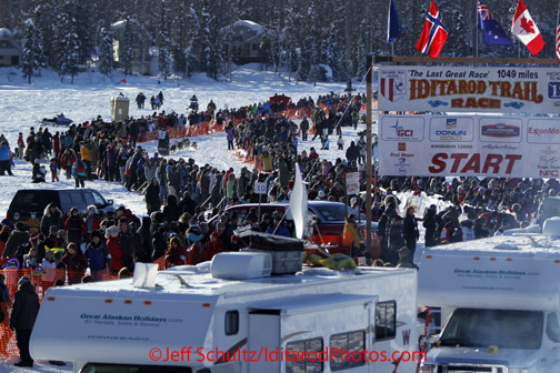 Sunday, March 4, 2012 A crowd of spectators lined the starting chute at the restart of Iditarod 2012 in Willow, Alaska.