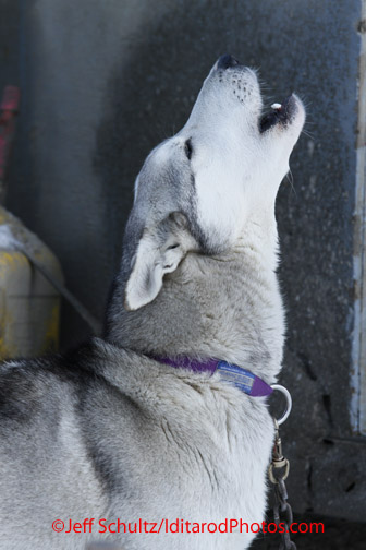 Sunday, March 4, 2012 Brent Sass’s dog howling prior to the restart of Iditarod 2012 in Willow, Alaska.