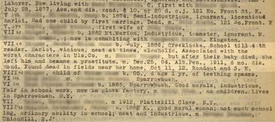 Prison mug shot of VII20 and corresponding entry in Estabrook’s typescript The Jukes Data