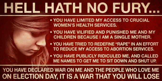 And this goes for you men, too. If you care about your woman, or women, be it wife, daughter(s), mother, friend(s), or just women in general, please vote wisely.