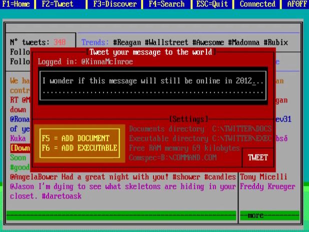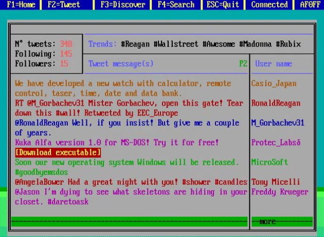 Try to imagine what logging into the internet and using Twitter would have been like back then. Don’t forget to “Change Directory” first. And F1=Home and hit the ESC key to quit.