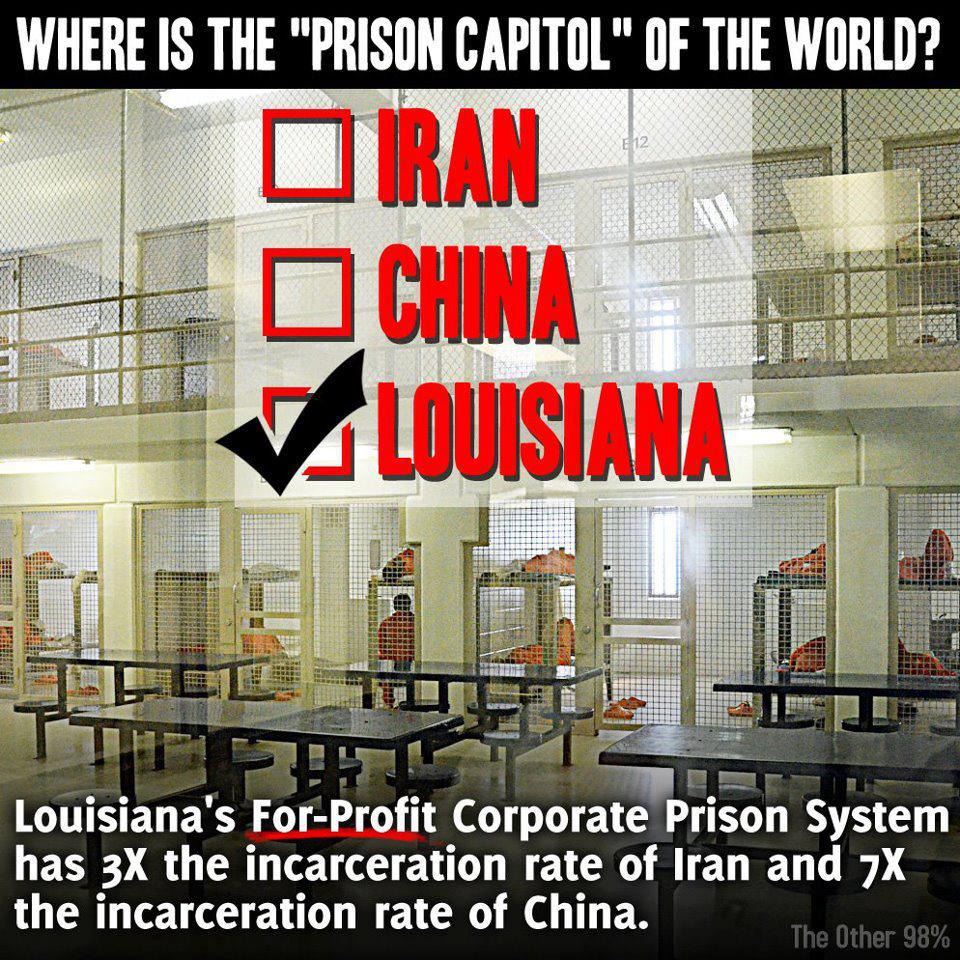 Although I am not from Louisiana, I am horribly ashamed that one of our states has SEVEN times the number of inmates in all of China.