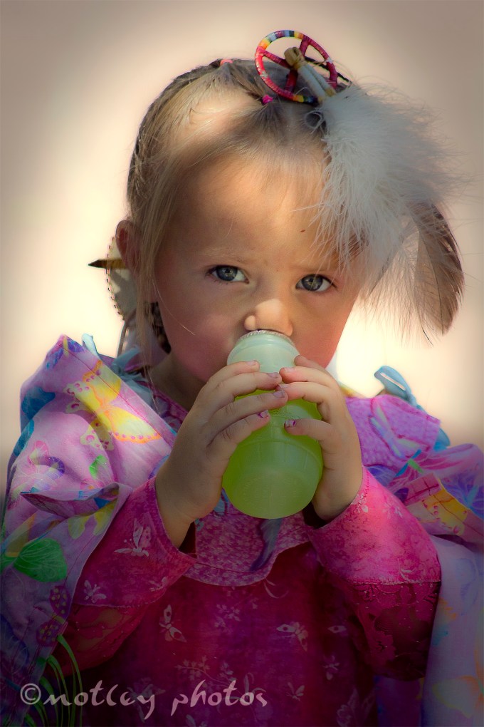 Photo I took in Old Town here in Albuquerque NM of a precious little blond girl dressed up as a Native American dancer. There was a small gather of dancers, young and old alike, in the Old Town square a few weekends ago. She is just absolutely precious!