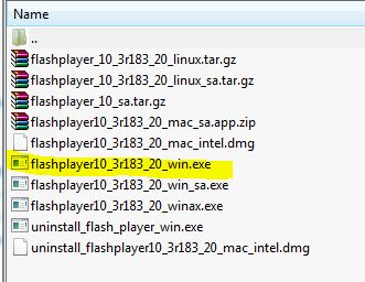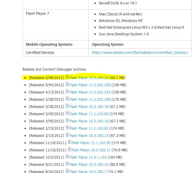 • I chose the top one “(Released 6/08/2012) Flash Player 10.3.183.20 (65.7 MB)”