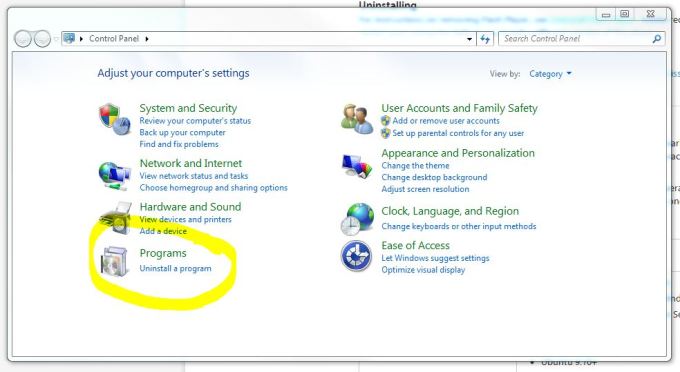 • Choose “Uninstall a Program” (below)