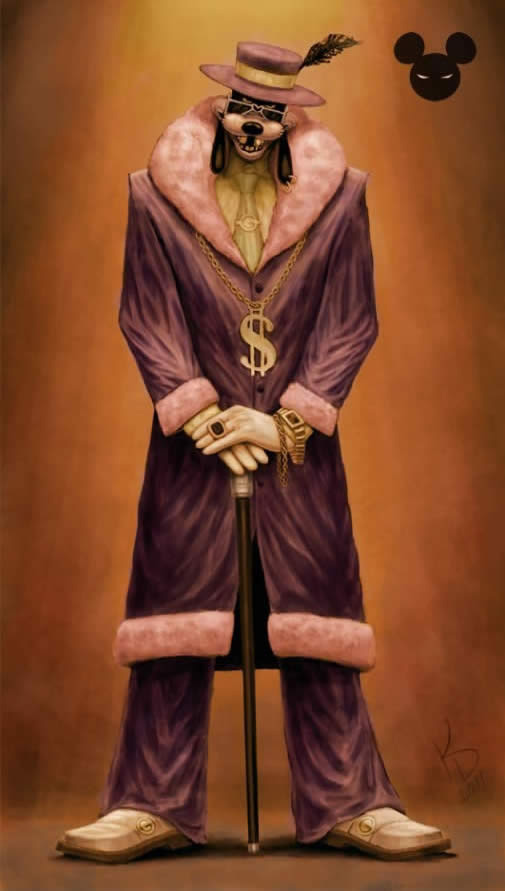 Remember those cute little Disney characters we all grew up with? Mickey Mouse, Minnie, Donald, Pluto, Goofy, and one of the Beagle Boys? Every wondered what they would look like if they “go bad”? Well, I never have either, but freelance artist Darko Kreculj from Pancevo, Serbia, has. Here are his illustrations on his visions of Gangsta Disney Ghetto….