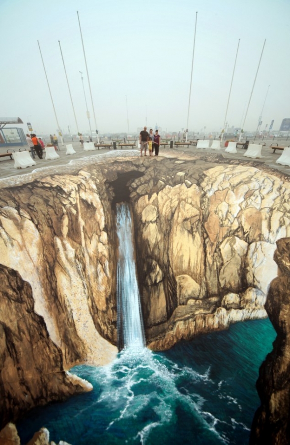 This guy is simply amazing. His art is breath-taking and mind-blowing. He is a master of street painting. He uses the street as a canvas. If one looks from the right spot, its three-dimensional painting becomes the perfect illusion. He paints over large areas of urban public life and gives them a new appearance, thereby challenging the perceptions of passers-by.