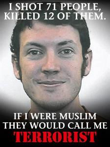 One thing that does bother me greatly is our system here in the states. Our government and military is so hell-bent on terrorism that they could not see the signals that Holmes gave in bright, neon letters. Face the fact, if Holmes had been Muslim or from the middle east, this would have immediately been tagged as terrorism and most likely attributed to the Al Queda. it is that old “blame game” that our military and government are using to brain wash the US into believing we are being threatened on our own soil by terrorists from other countries. When adding up all the mass shootings which have occurred in the past decade, looks to me like we don’t have a problem with terrorism from outside our borders – but rather threats from our own population not being able to handle the reality within our own society.
