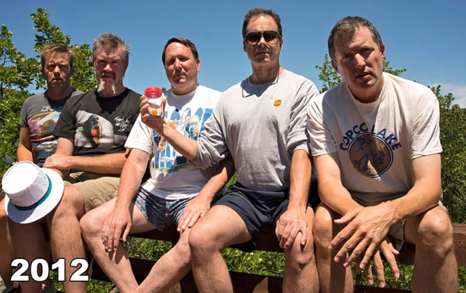 “Watch us lose hair and gain forehead, gain and lose and gain and lose weight,” Dickson posted on a website he maintains devoted to the tradition. “There are reasons we all decided it was better to take the photo with our shirts on.”