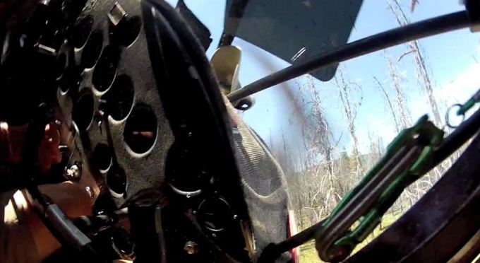 But the plane crashed about four minutes into the flight. It seemed to encounter difficulty at takeoff, having trouble getting lift. The YouTube account chalks the problem up to an “air pocket” that made the craft lose altitude and descend rapidly into the trees.