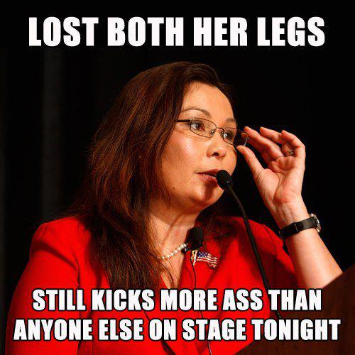 Tammy Duckworth is a candidate for the U.S. House of Representatives, Ill., one of the first Army women to fly combat missions in Iraq, spoke about her military service. Due to a grenade landing in her Black Hawk, she lost both her legs. I rarely become emotional, especially when it comes to politics. Well, yes, I become angry-emotional. But I don’t cry. What Tammy had to say nearly brought me to tears. When the grenade went off in her lap while she was piloting the helicopter, she somehow managed to bring it down safely – even though the grenade had blown off one leg and damaged the other leg so badly she would lose it, and also shredded her arm. They landed in a very risky area, and her fellow National Guard team refused to leave her. No man OR woman left behind. Because of them, she is here today.
