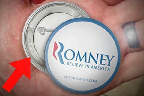Romney campaign button which says, “Romney Believe in America” was MADE IN CHINA! FAIL!