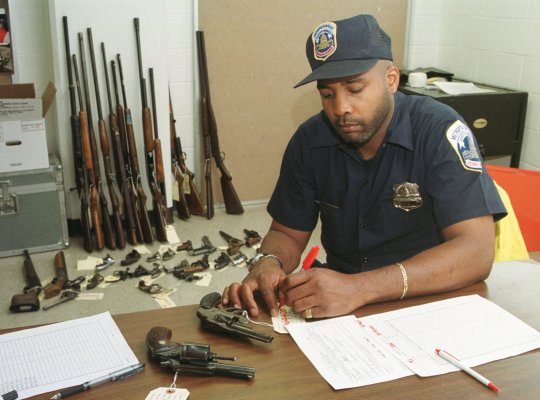 Well, Rathner is wrong. These firearms were sold to the police department, thus the name “buy back.” They are not seized or abandoned.